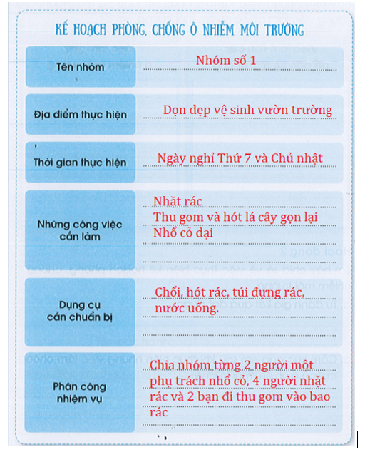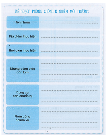 Xây dựng kế hoạch phòng, chống ô nhiễm môi trường theo gợi ý dưới đây: