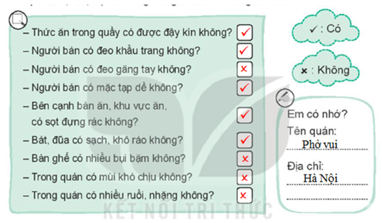 Quan sát và cùng người thân thảo luận về mức độ vệ sinh an toàn thực phẩm tại một quán hàng mà gia đình đã từng đến ăn.