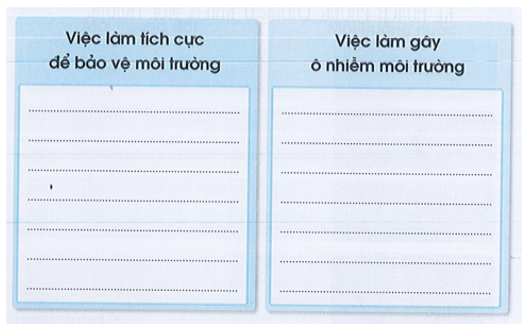 Hãy nêu những việc làm tích cực để bảo vệ môi trường và những việc làm gây ô nhiễm môi trường.