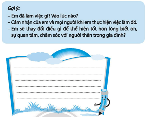 Viết việc em đã làm thể hiện lòng biết ơn, sự quan tâm, chăm sóc với người thân trong gia đình.