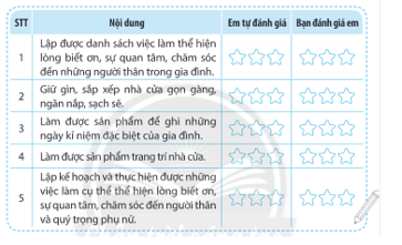 1. Em tự đánh giá và bạn đánh giá em rồi tô màu vào các ngôi sao tương ứng.