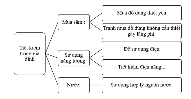 - Vẽ sơ đồ tư duy về tiết kiệm trong sinh hoạt gia đình theo gợi ý: