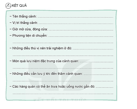 - Những cảnh quan được các em lựa chọn đưa vào Hành trình trải nghiệm (Lưu ý: Có thể đưa vào nhiều hơn 3 cảnh quan):