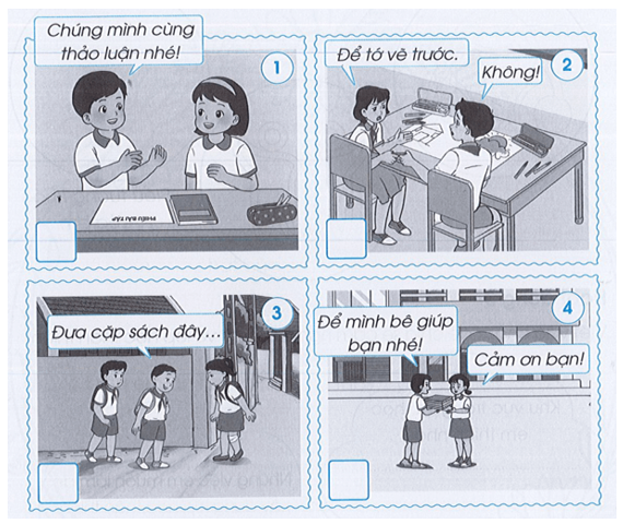 Em đồng tình với bạn ở hình 1 và 4 vì các bạn biết cùng làm việc nhóm và biết giúp đỡ nhau. Đây là những việc tốt nên làm.