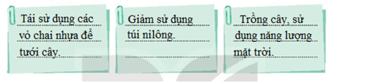 – Theo em, những việc em và người thân thực hiện sẽ giúp ích cho môi trường xanh hơn, sạch hơn, hạn chế được các chất thải không phân hủy thải ra môi trường.