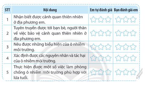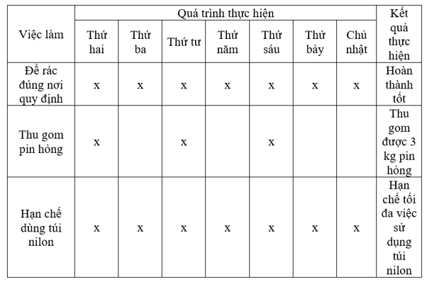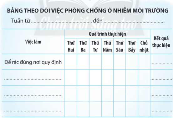 Thực hiện và ghi kết quả những việc làm phòng chống ô nhiễm môi trường của bản thân bằng cách: