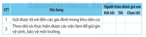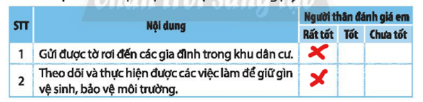 Em xin ý kiến người thân bằng cách đánh dấu X vào ô tương ứng với mức độ mà em thực hiện các việc làm theo gợi ý: