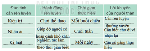 − Kế hoạch rèn luyện đức tính phù hợp với nghề em yêu thích mà em đã thảo luận và lập cùng các bạn