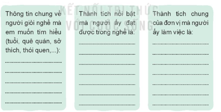 − Thông tin về một người giỏi nghề mà em yêu thích.