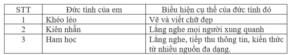 1. Viết những đức tính mà em có vào bảng sau: