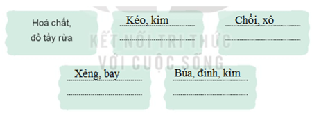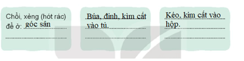 − Phân loại và dán nhãn nơi để, cất các dụng cụ lao động cho dễ tìm kiếm: Em hãy suy nghĩ và viết các nội dung dự định làm nhãn để dán: