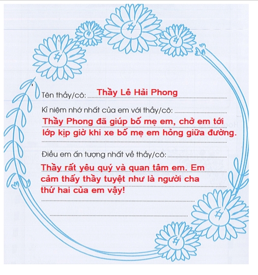 Kể lại được điều ấn tượng nhất về thầy cô giáo. |