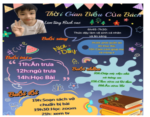 - Em đã treo thời gian biểu trên bàn học để dễ nhìn và nhắc nhở bản thân thực hiện nghiêm túc.