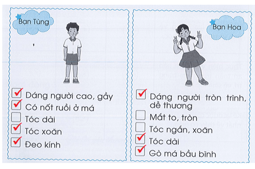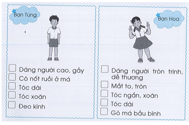 Đánh dấu ü vào ô trống trước những nét riêng của bạn Tùng và bạn Hoa.