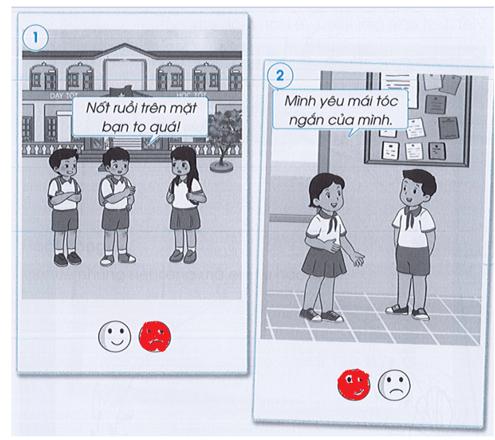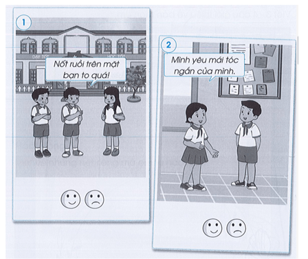 Tô màu vào mặt 😊 nếu em đồng tình, tô màu vào mặt ☹ nếu em không đồng tình trong các trường hợp sau và giải thích lí do.