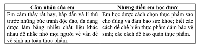 Viết cảm nhận và những điều em học được sau khi tham gia triển lãm tranh hoặc ảnh về vệ sinh ăn toàn thực phẩm.
