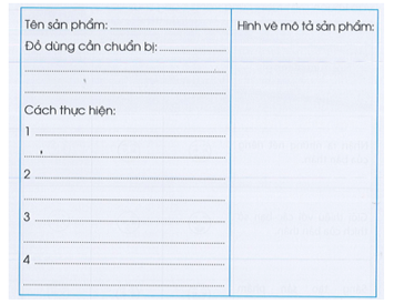 Trình bày ý tưởng về một sản phẩm sáng tạo mà em muốn thực hiện bằng cách viết, vẽ vào báng sau: