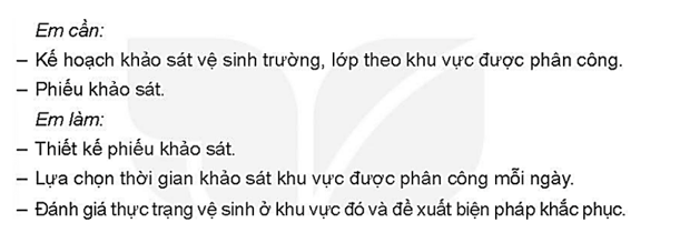 Lập phiếu khảo sát cá nhân để khảo sát thực trạng vệ sinh trường, lớp