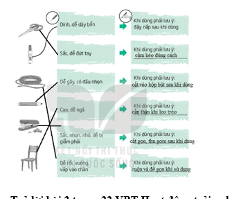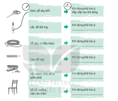 Nối dụng cụ với đặc điểm của nó. Ghi cách sử dụng an toàn dụng cụ đó.