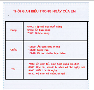 Lập thời gian biểu các hoạt động trong ngày của em vào khung dưới đây: