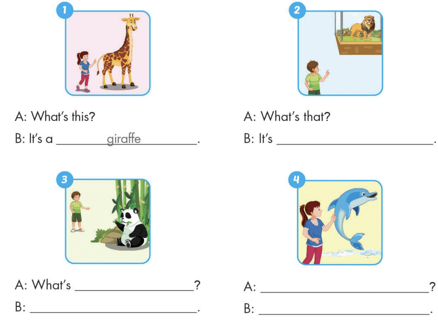 B: It’s a giraffe. (Đó là một con hưou cao cổ.)