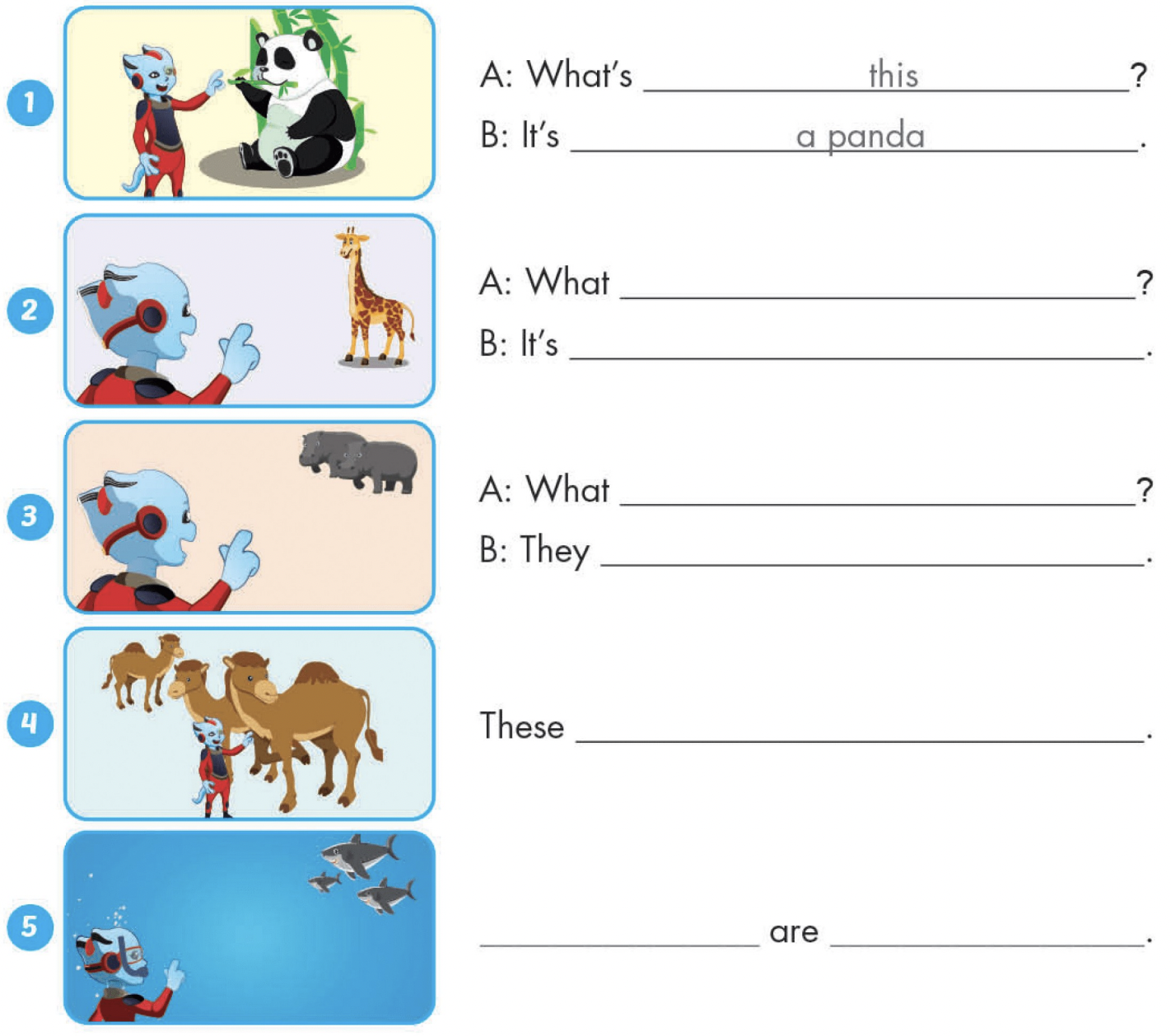 2. B: Oh wow. Those animals are cool.