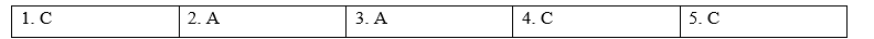(Bạn sẽ nghe năm đoạn hội thoại ngắn. Bạn sẽ nghe mỗi đoạn hội thoại hai lần. Có một câu hỏi cho mỗi cuộc hội thoại. Đối với mỗi câu hỏi, hãy chọn câu trả lời đúng (A, B hoặc C).)