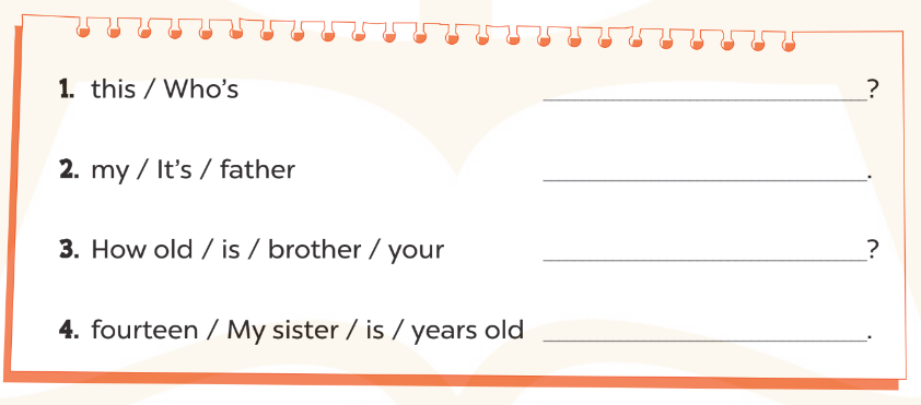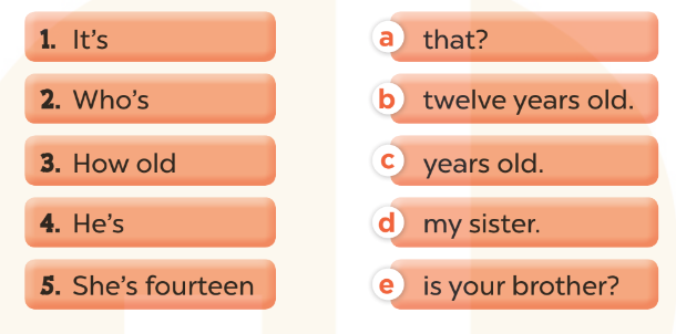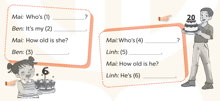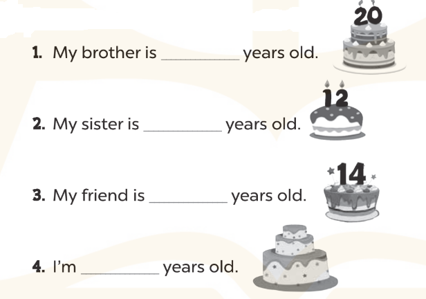 My name is Nam. This is my (1) _____. She is sixteen (2) _____ old. This is my (3) _____ He is (4) _____ years old. And look! This is me. I am eight years old.