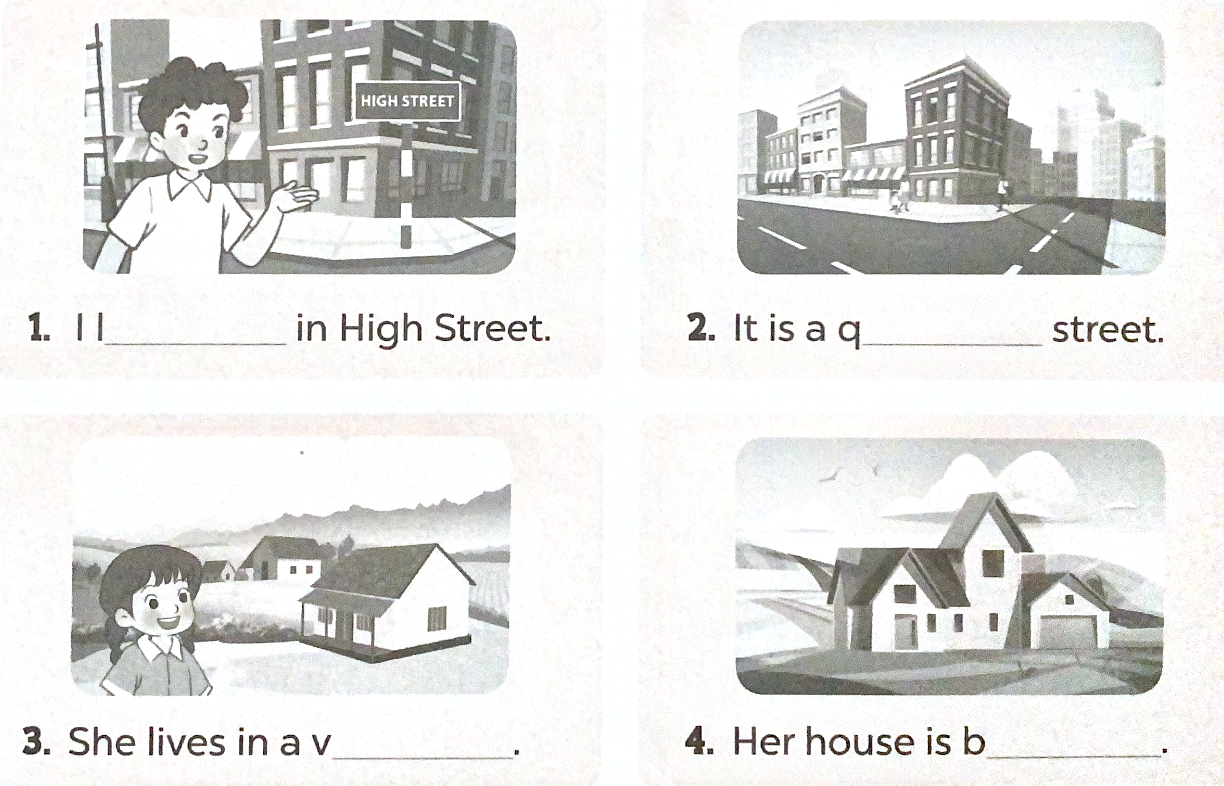 1. Emma and her family live in a big house. (Emma và gia đình cô ấy sống trong một ngôi nhà lớn.) |