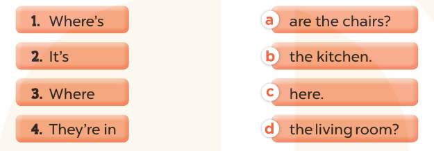1 - d. Where’s the living room?(Phòng khách ở đâu?)