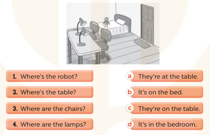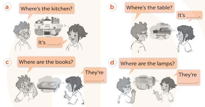 d. A: Where are the lamps? (Những chiếc đèn ở đâu?)