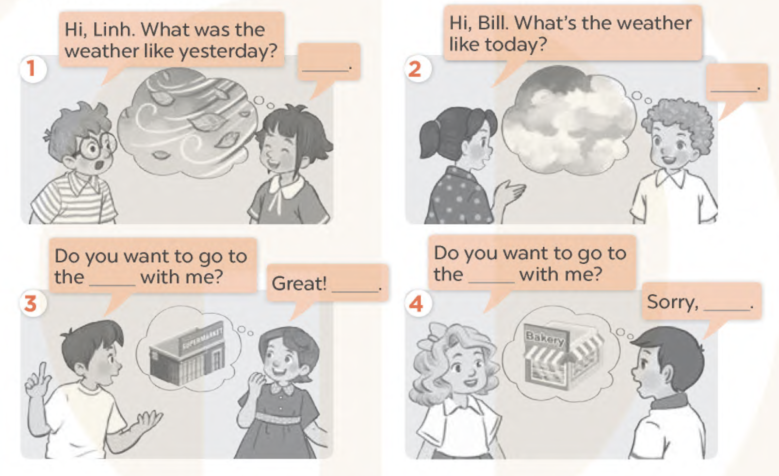 1. Chào Linh. Hôm qua thời tiết thế nào?