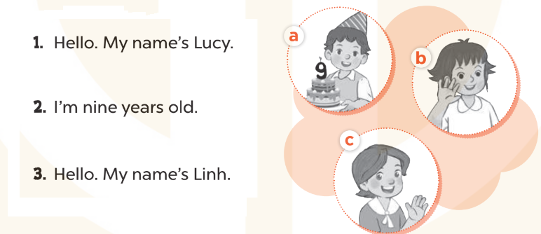 1. Hello. My name’s Lucy. (Xin chào. Tên của mình là Lucy. )