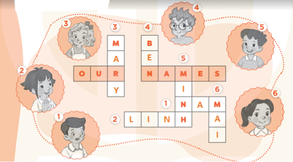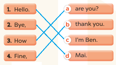 Minh: Hi. (1) My name’s Minh. (Chào, Tên của tôi là Minh.)