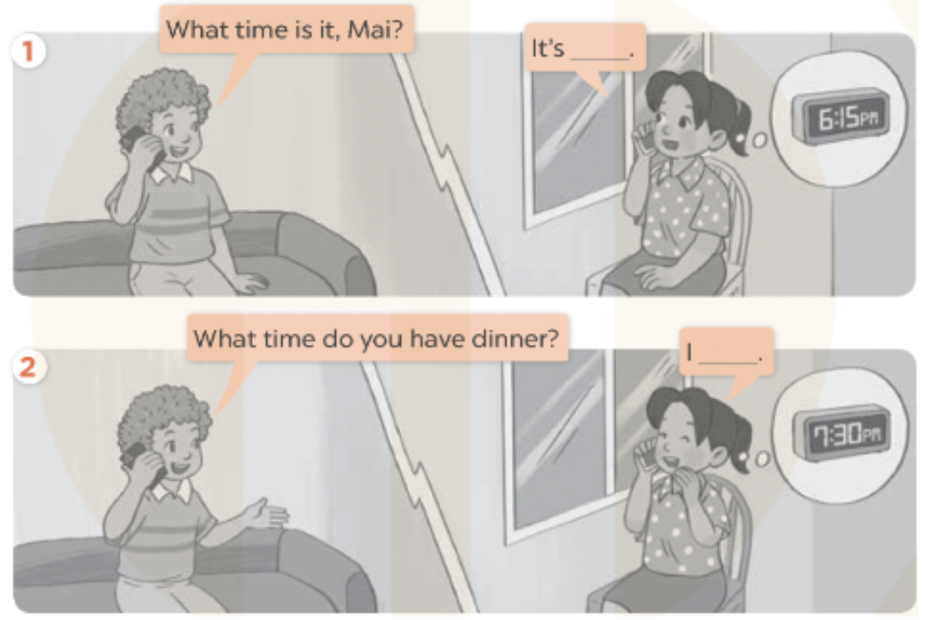 4. What time do you have dinner? (Bạn ăn tối lúc mấy giờ?)