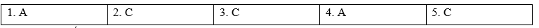 (Bạn sẽ nghe năm đoạn hội thoại ngắn. Bạn sẽ nghe mỗi đoạn hội thoại hai lần. Có một câu hỏi cho mỗi cuộc hội thoại. Đối với mỗi câu hỏi, hãy chọn câu trả lời đúng (A, B hoặc C).)