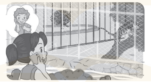 Mai: I’m at the zoo. (Tớ đang ở trong sở thú.)