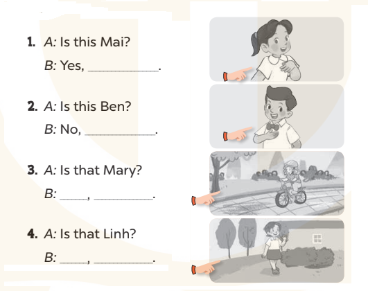 1. A: Is this Mai? (Đây là Mai phải không?)
