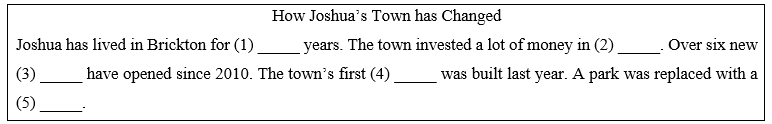 Narrator: You will hear Joshua talking about how his town has changed. For each question, write no more than two words or a number in the blank.