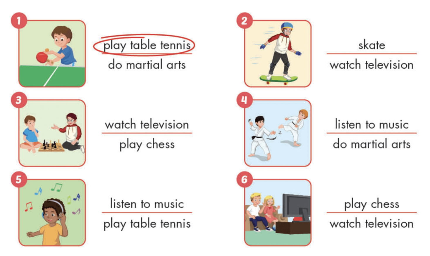 Circle the odd one out and write. Look and circle. Listen and circle. Look and write.