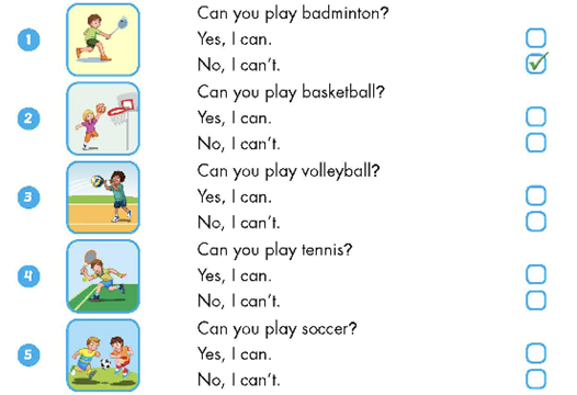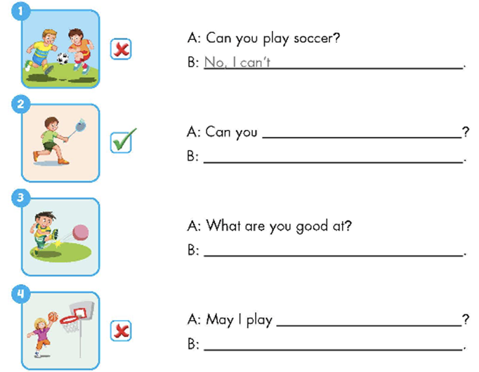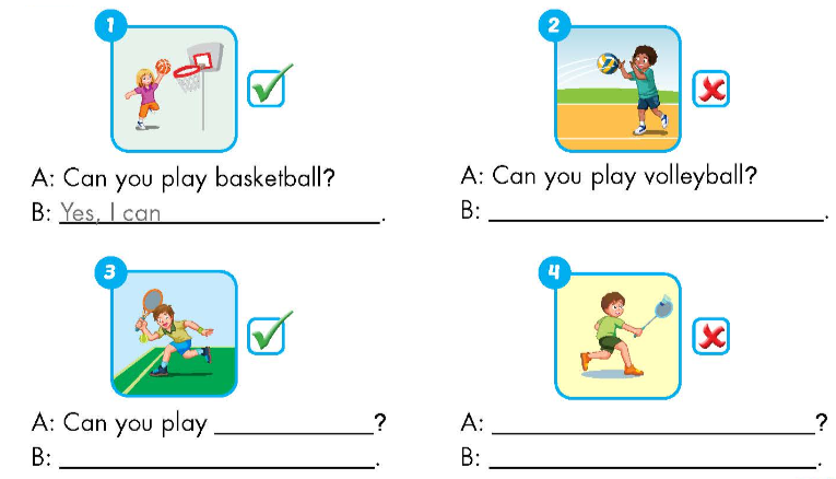 A:Can you play badminton? (Bạn có thể chơi cầu lông không?)