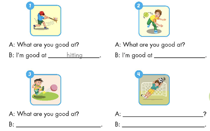 B: I’m good at hitting. (Tôi đánh bóng giỏi.)