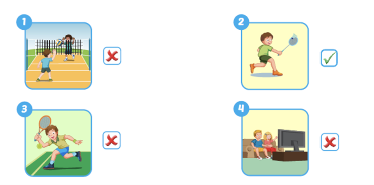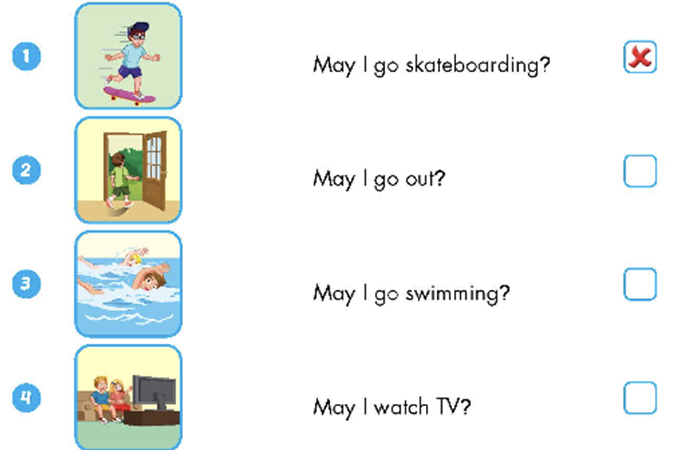 (Lắng nghe và đánh dấu tích hoặc dấu gạch chéo.)