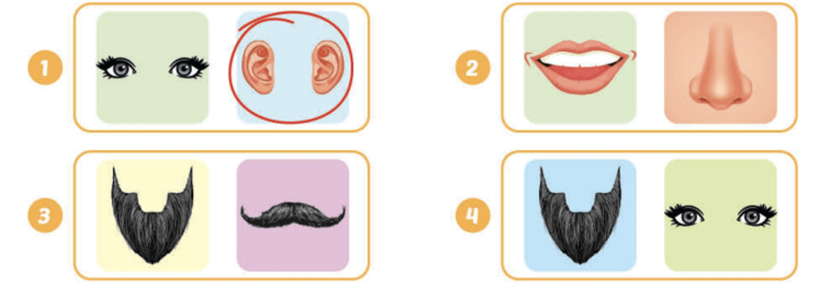 Draw lines. Complete the words. Listen and put a tick (√) or a cross (X). Look and write.