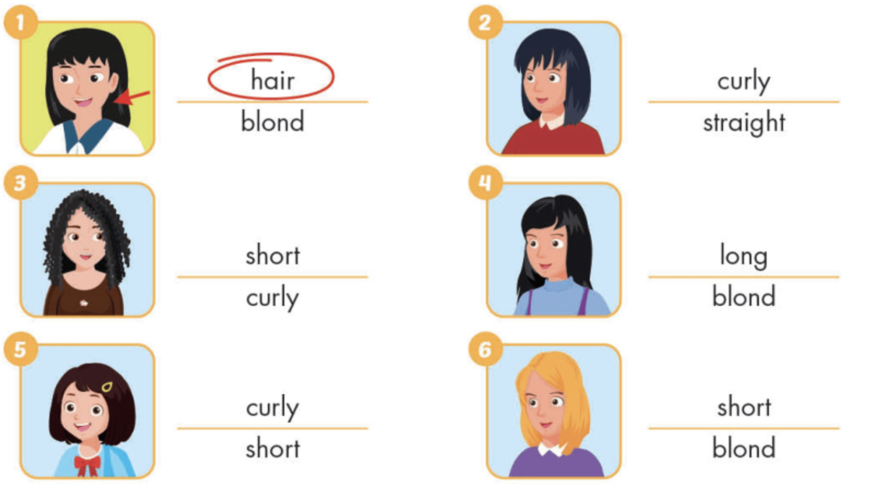 G: Có đấy. Cô ấy có mái tóc dài, xoăn, màu vàng.