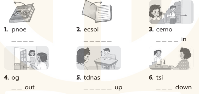Complete and say. Look, write and read. Read and match the opposites. Read and match. Make sentences. Ask and answer. Read and complete. Read and write. Look and write the questions. Write your answer.