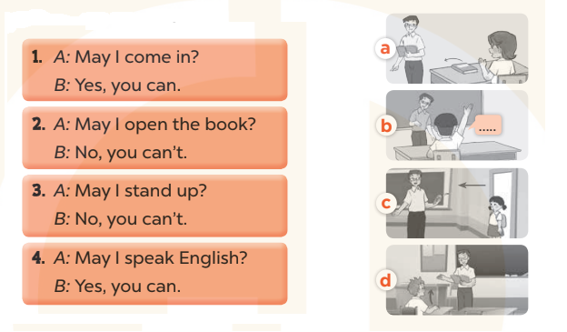 2. Lucy: May I open the book? (Em có thể mở sách ra được không ạ?)