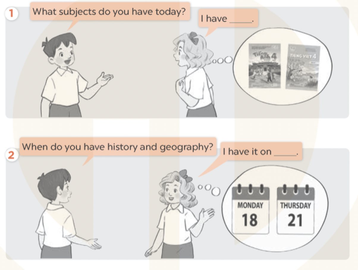 2. A: Khi nào bạn có môn lịch sử và địa lý?