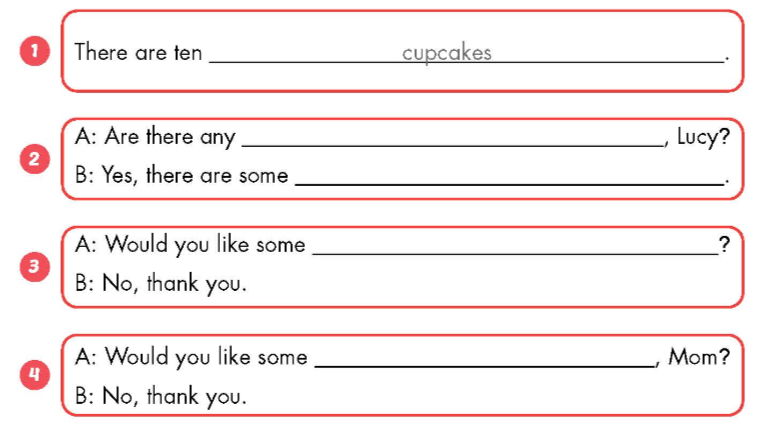 1. There are three cupcakes. (Có 3 chiếc bánh nướng nhỏ.)