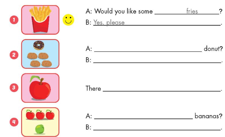 A: Would you like some fries? (Bạn có muốn một ít khoai tây chiên không?)
